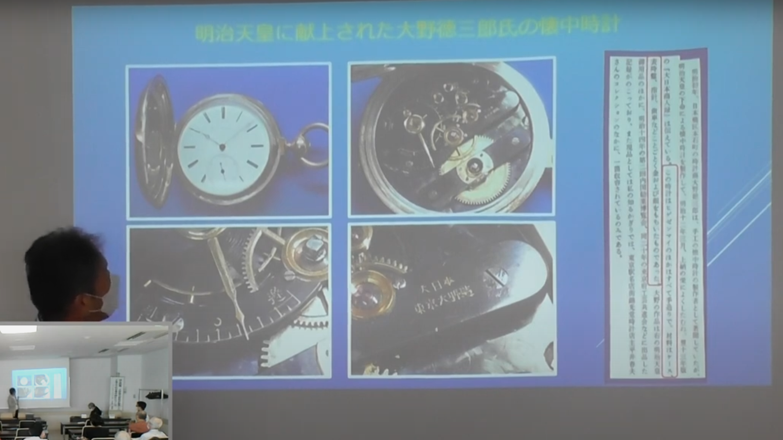 - ・講演1 :明治初期、大野徳三郎氏が製作したと考えられる懐中時計について
